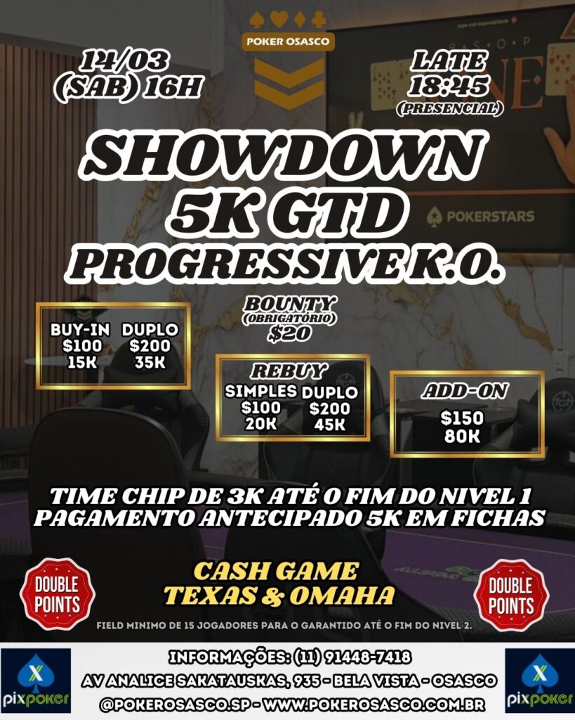 📍 Onde: Poker Osasco (Avenida Analice Sakatauskas, 935 – Bela Vista)